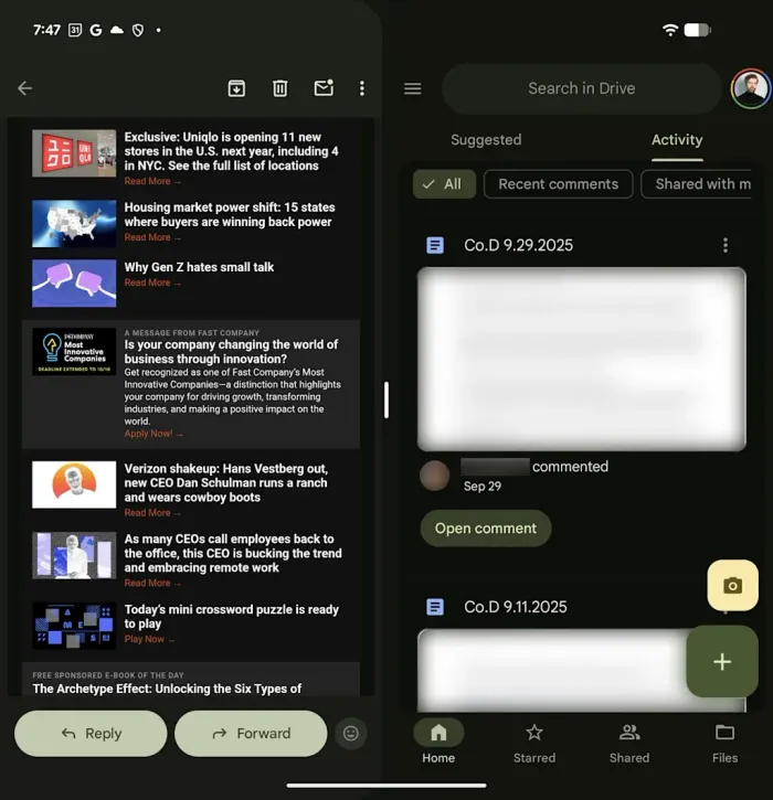 I didn’t unlock some amazing multitasking experience with the Pixel—though you can technically load two apps and, in some cases, drag and drop files between them.