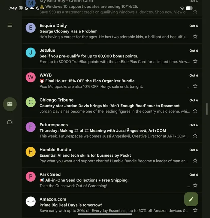 Gmail feels approachable for sure, but it falls short of its potential. It formats information into either a big email or a few thin columns . . . essentially giving you the experience of holding a few phones side-by-side. It’s a sensible solution, but one that falls short of rethinking information architecture and display entirely to celebrate the possibilities of a larger screen.