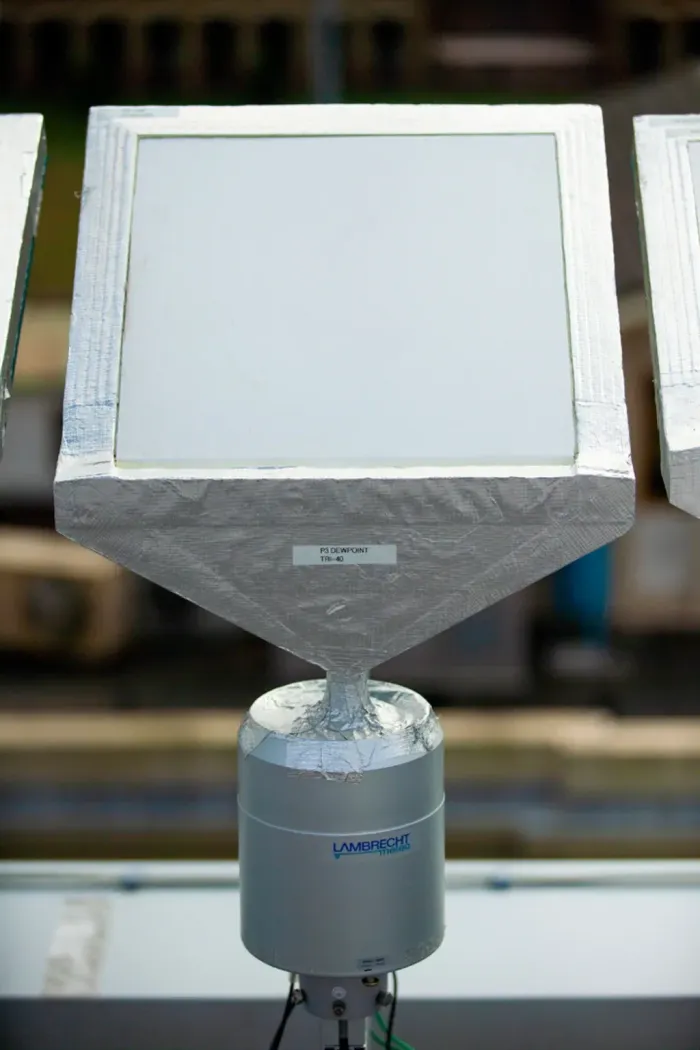 She notes that the coatings need to be clearly exposed to the sky to be most effective. “If used on the walls of buildings, they would still bring some cooling, but not as much as on the roof,” she adds. The ideal configuration is at a small tilt, a roof angled at about 30 degrees, to enable the roll-off of water droplets.