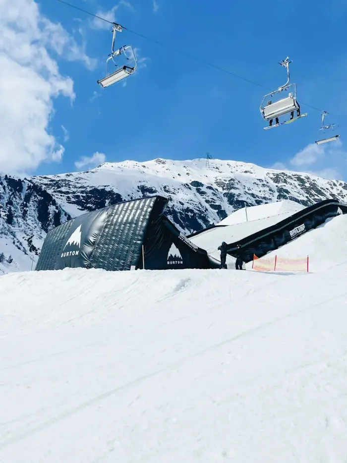 Sites that have these systems, relatively few and far between, have become destinations for advanced training. Wy’East Mountain Academy, an extreme sports-focused secondary school in Sandy, Oregon, installed a $4 million bag on its slopes last year that’s open year-round. The 80-by-200-foot airbag, contoured to the curve of the mountain and installed using snowcat vehicles, is the largest in North America, and something that is relatively rare in the U.S. Smaller versions can be found at the U.S. Ski & Snowboard headquarters in Park City, Utah, and temporarily on California’s Mammoth Mountain.