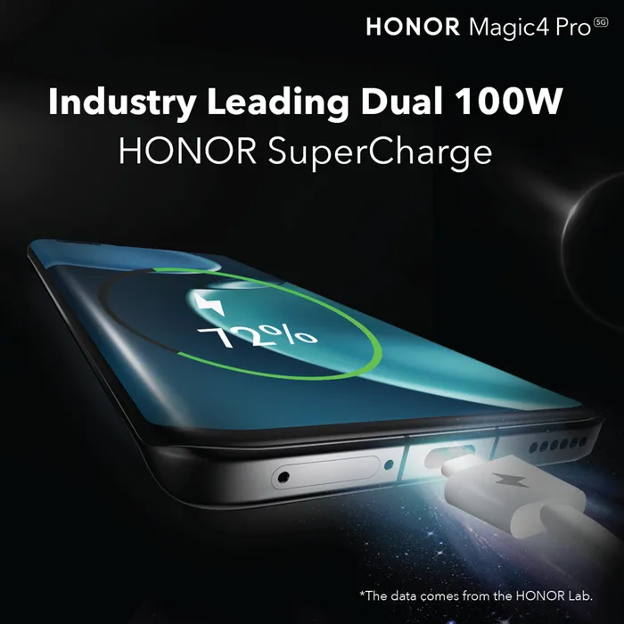 The first feature that will go beyond expectations is photography and videography which will offer cinematic-level footage. It is understood that the device will feature the HONOR Magic-Log Movie Master and AI Film Effects, offering a dynamic range and rich colour expression for shooting videos. This feature will position this mobile device as a must-have tool for creators. It’s believed that it will have the ability to deliver the world’s first 10-bit Log 4K video recording in 60fps (frame per second) which beats the industry benchmark, something that will excite many who care about quality photography. It is also believed that its camera quality will be equivalent to cameras that are commonly used to shoot professional-grade movies, as its log format allows users to enhance the look of their videos with cinematic colour tones in HDR clarity. This powerful functionality will require a good battery that can becharged with ease and speed. To cater to this the HONOR Magic4 Pro it is understood that it is equipped with a large 4 600mAh battery, which delivers an ultra-long battery life and a hassle-free charging experience. Its 100W fast charger will help users to go from zero to 100 percent within not much more than 30 to 40 minutes.