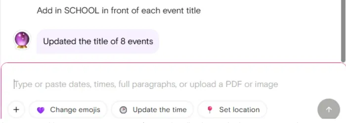 And now, in addition to all of that, you can also give Agenda Hero plain-text commands to tweak your extracted events to your specifications—adding in a specific location, setting a certain length, putting a particular name or even emoji at the start of each title, or making the events recurring in any way imaginable, just for a few fast examples.