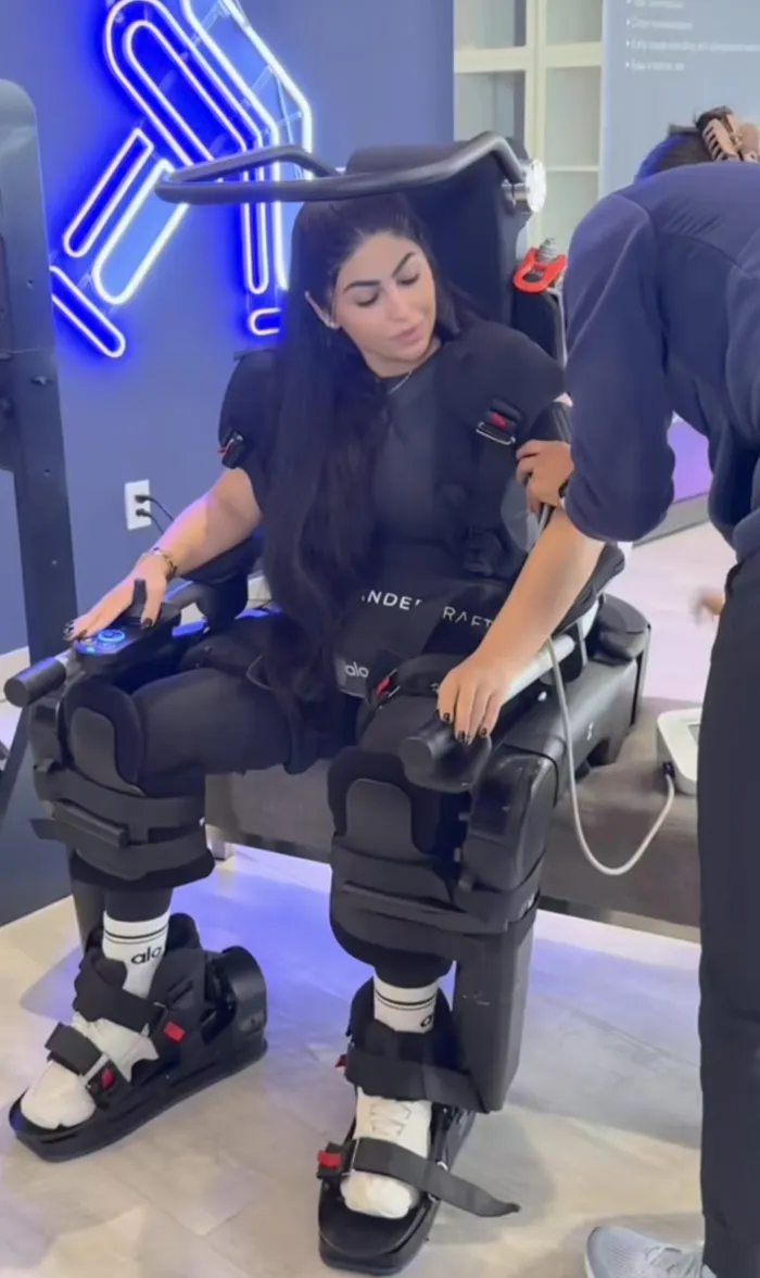 The now social media influencer describes how she joined the trial for the exoskeleton: Tawil underwent a rigorous body-screening process, had full-body bone density scans, and was precisely fitted for the suit.