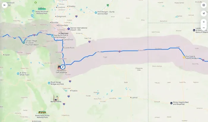 Be sure to zoom in to specific parts of the route, too—using either the standard two-finger pinching gesture on mobile or the plus and minus icons (or, alternatively, a mouse scroll wheel) on desktop—to reveal even more detail and specific suggestions for different parts of your drive.