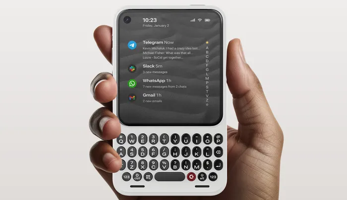 Clicks Communicator: A BlackBerry-style phone with a physical keyboard and expandable storage — a nostalgic nod with modern upgrades.