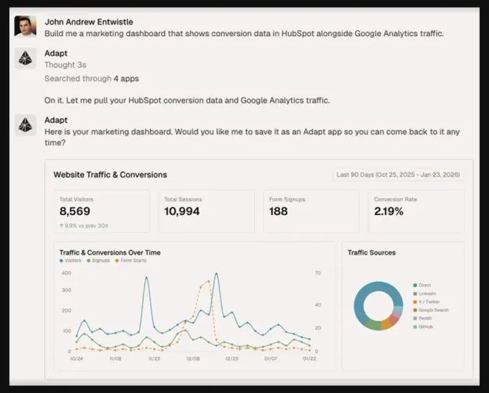 Other companies have also recently announced AI tools that can help with work tasks and data analysis, like Anthropic’s Claude Cowork and Slack’s recently upgraded Slackbot. But Benton says he believes that San Francisco-based Adapt—which just announced a $10 million seed round, on top of a $3 million pre-seed round announced in August—has an edge through its ease of integration with other software and its virtual machine approach, which doesn’t require users to locally run its software or data. The company initially onboarded new customers individually, aiding with integration, and recently added self-service options.