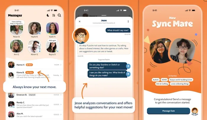 Part of Synchrony’s strategy is the use of Jesse (named after Pastrano’s son), marketed as an “AI-powered social support tool that goes far beyond chat assist technology.” By providing real-time conversation support, the chatbot aims to overcome social anxiety and a lack of confidence around socialisation. Talking with Jesse online, developers claim, will bolster user self-assurance and communication skills, eventually manifesting in real life.