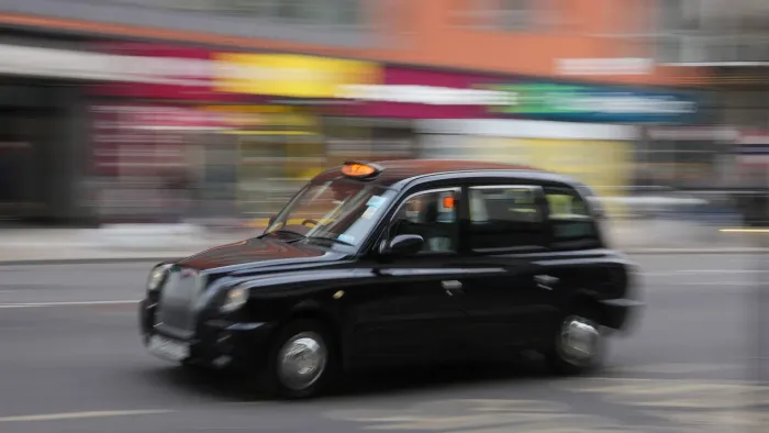 Britain Robotaxis A black cab drives along a street in London, Monday, Feb. 9, 2026.
