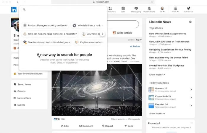 Now LinkedIn is taking a major step to address that. A new feature called AI-powered people search uses generative AI to break past the limitations of conventional search. It understands requests such as “investors with FDA experience for a biotech startup.”